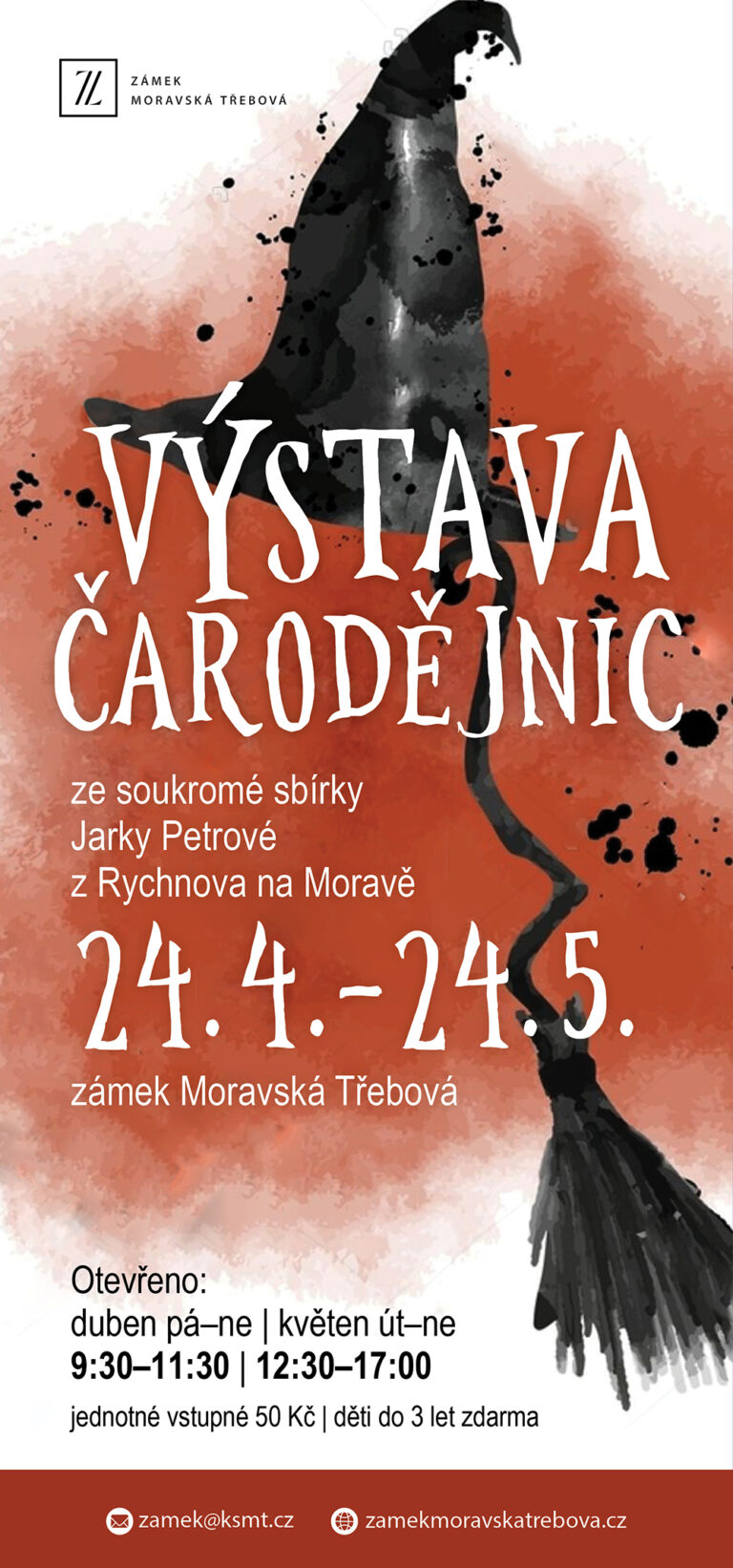 Zveme vás na výstavu soukromé sbírky čarodějnic, kterou na zámek zapůjčila paní Jarka Petrová z Rychnova na Moravě. Budete si moci prohlédnout více než 150 rozmanitých figur různých velikostí. Pálení čarodějnic je lidový svátek slavený v noci z 30. dubna na 1. května, nazývaný také filipojakubská noc. Jeho kořeny sahají do předkřesťanských dob a souvisejí s ochranou před zlými silami, očistou a příchodem jara. Zapalování velkých ohňů mělo podle lidových představ odehnat zlé duchy, očistit krajinu i lidi